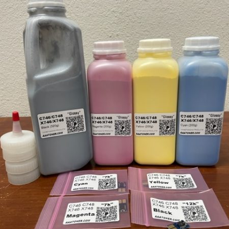 (320g/200g) 4 High Yield Toner Refill for Lexmark C746, C748, X746, X748 + 4 Chip