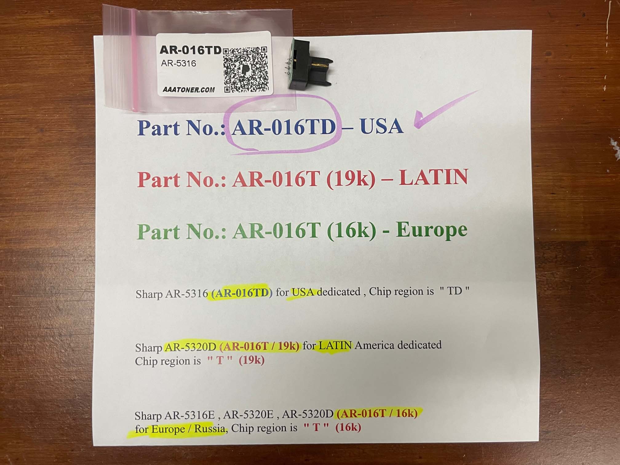 Sharp AR-5316 (AR-016TD) for USA dedicated , Chip region is ” TD ”