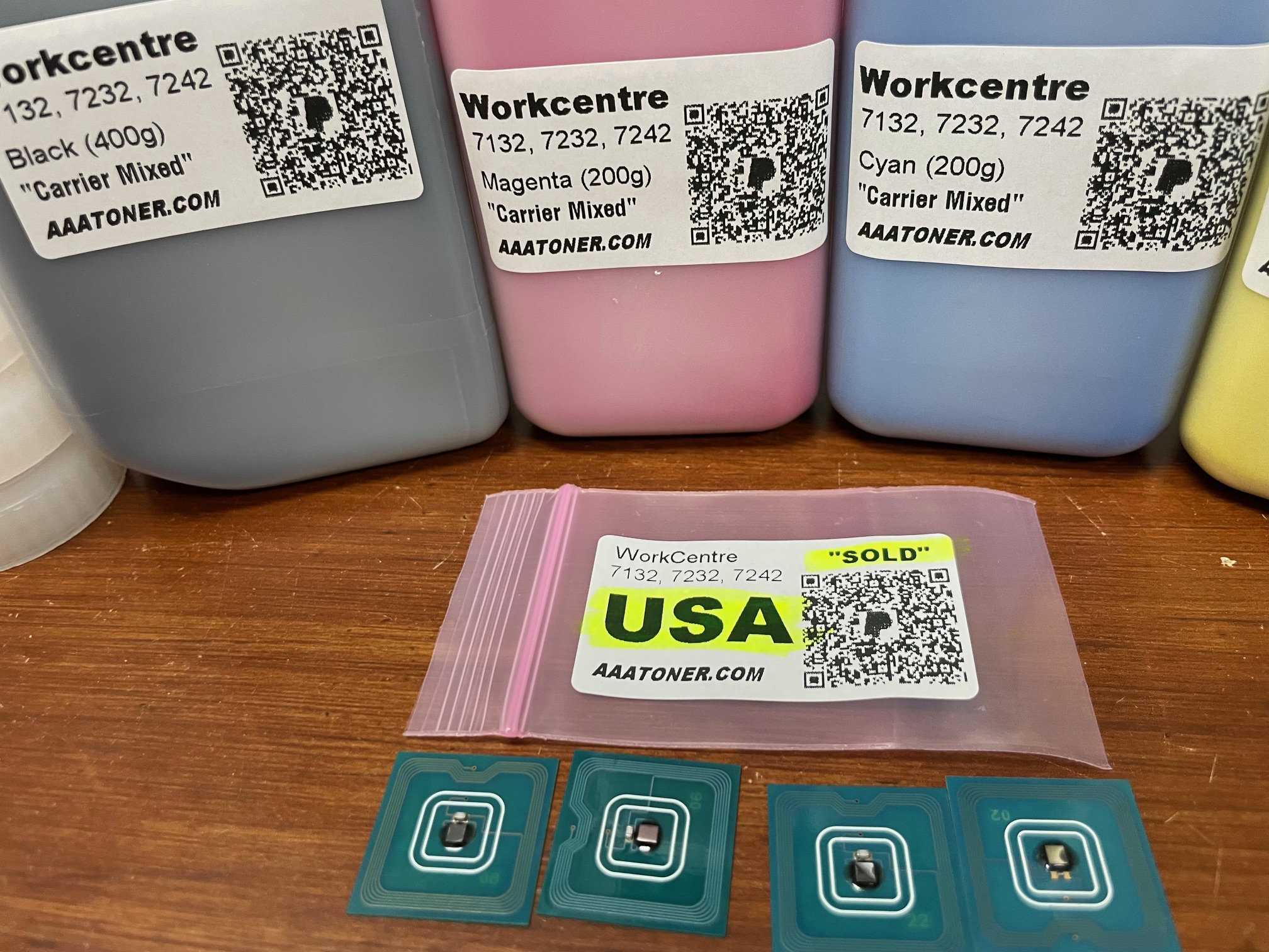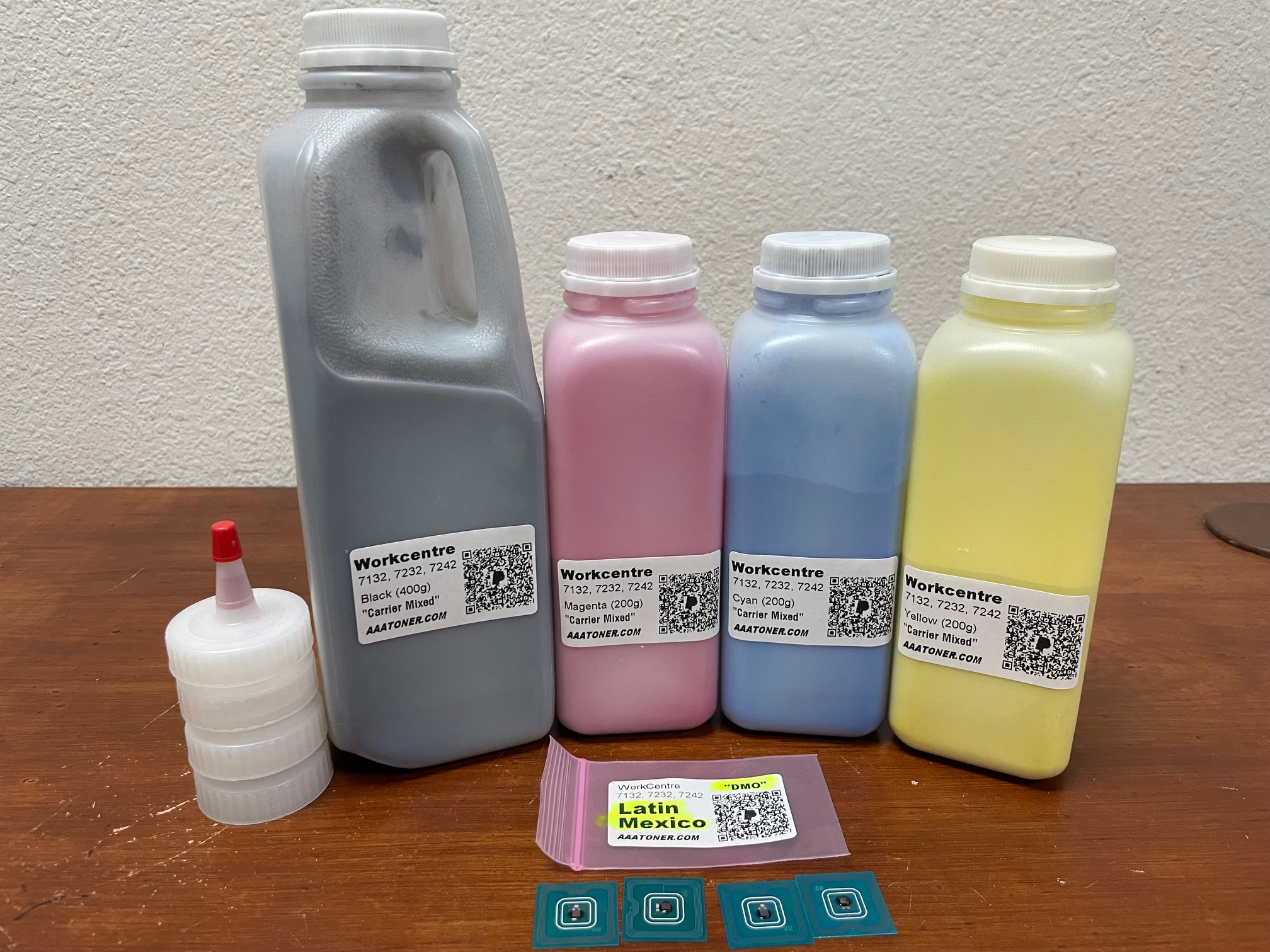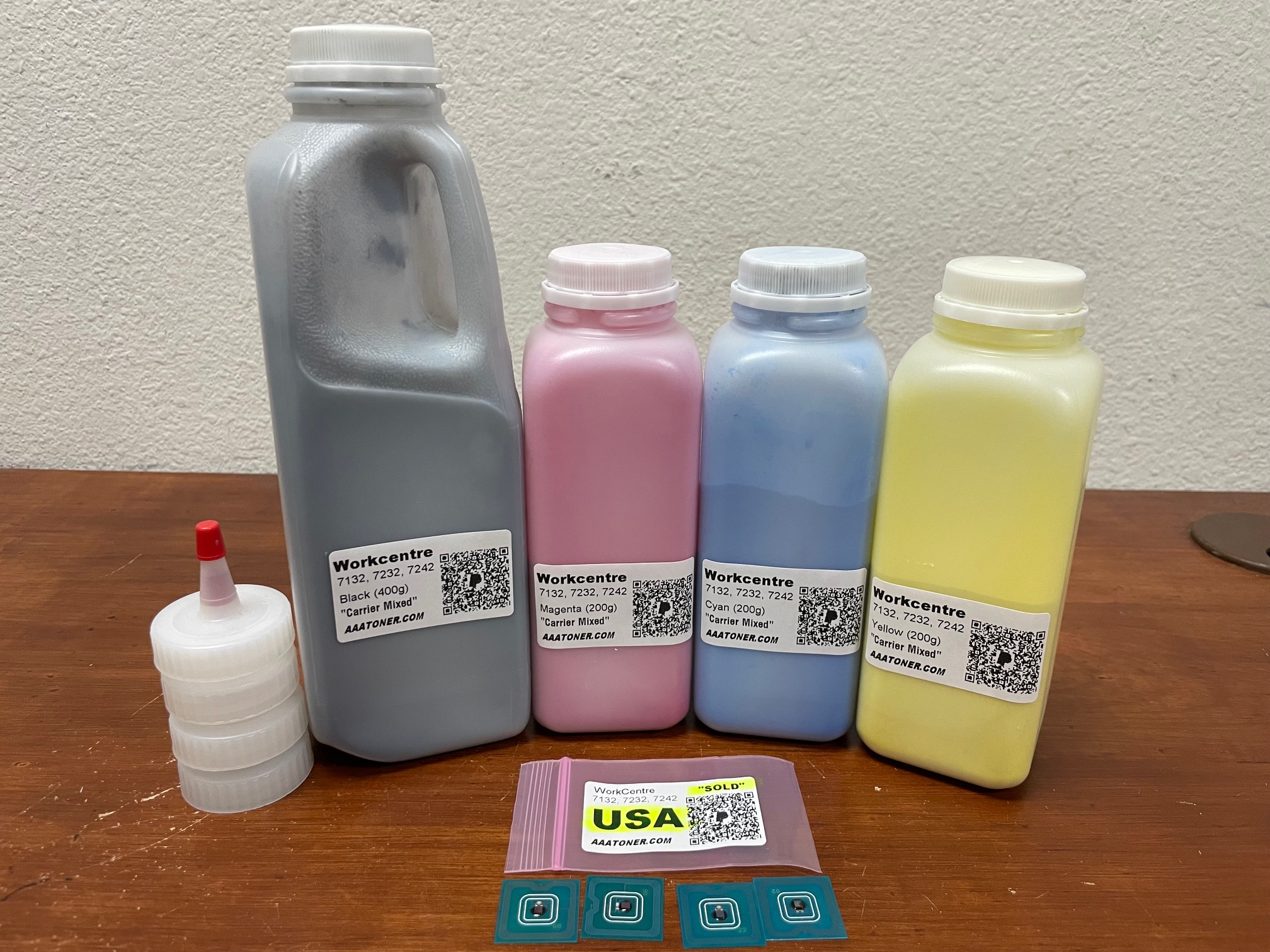 (400g/200g) 4 Toner Refill for Xerox WorkCentre 7132, WorkCentre 7232, WorkCentre 7242 + 4 Chips