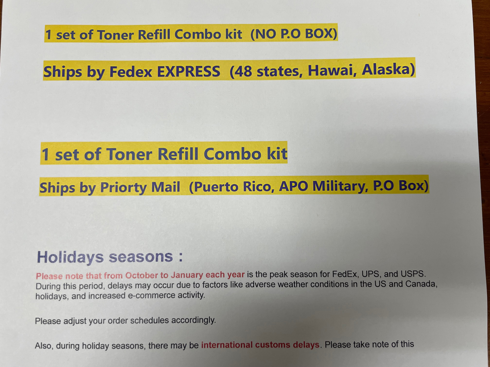 No. of pages: Up to 26,000 pages (BK) / 15,000 pages (CMY) at 5% Coverage