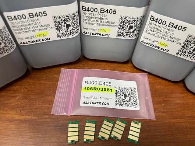 (130g x 5) 106R03580 + 5 Chips (USA), (130g x 5) 106R03581 + 5 Chips (DMO, Mexico), (1,000g/1kg) BULK Toner Refill
