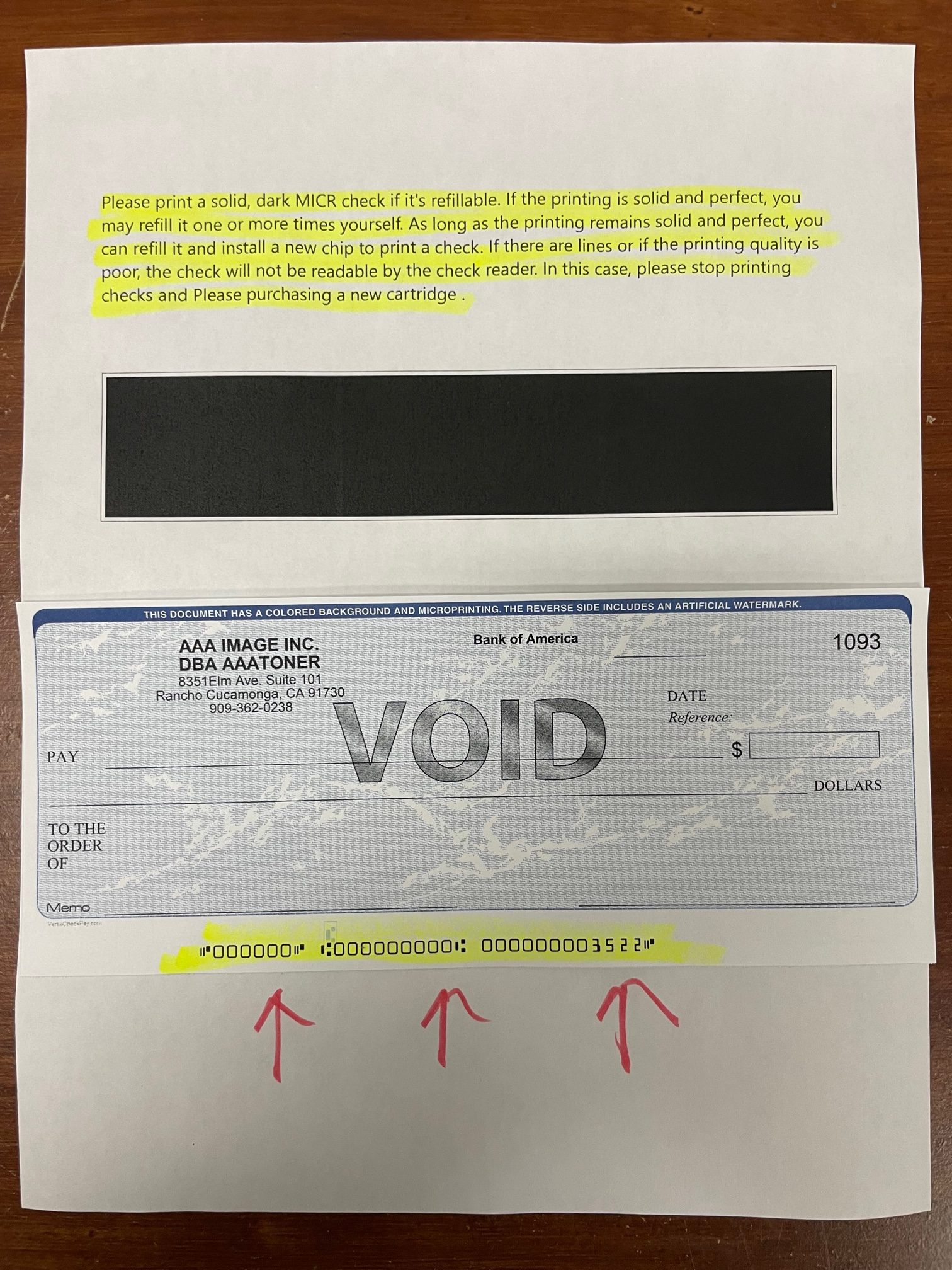 Please print a solid, dark MICR check if it’s refillable. If the printing is solid and perfect, you may refill it yourself.