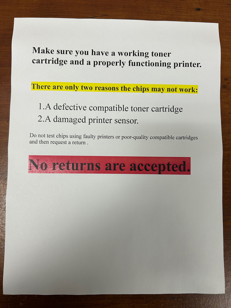 “If you encounter a message stating ‘Counterfeit, Non-Canon,’ simply close it and ignore. (Canon only)