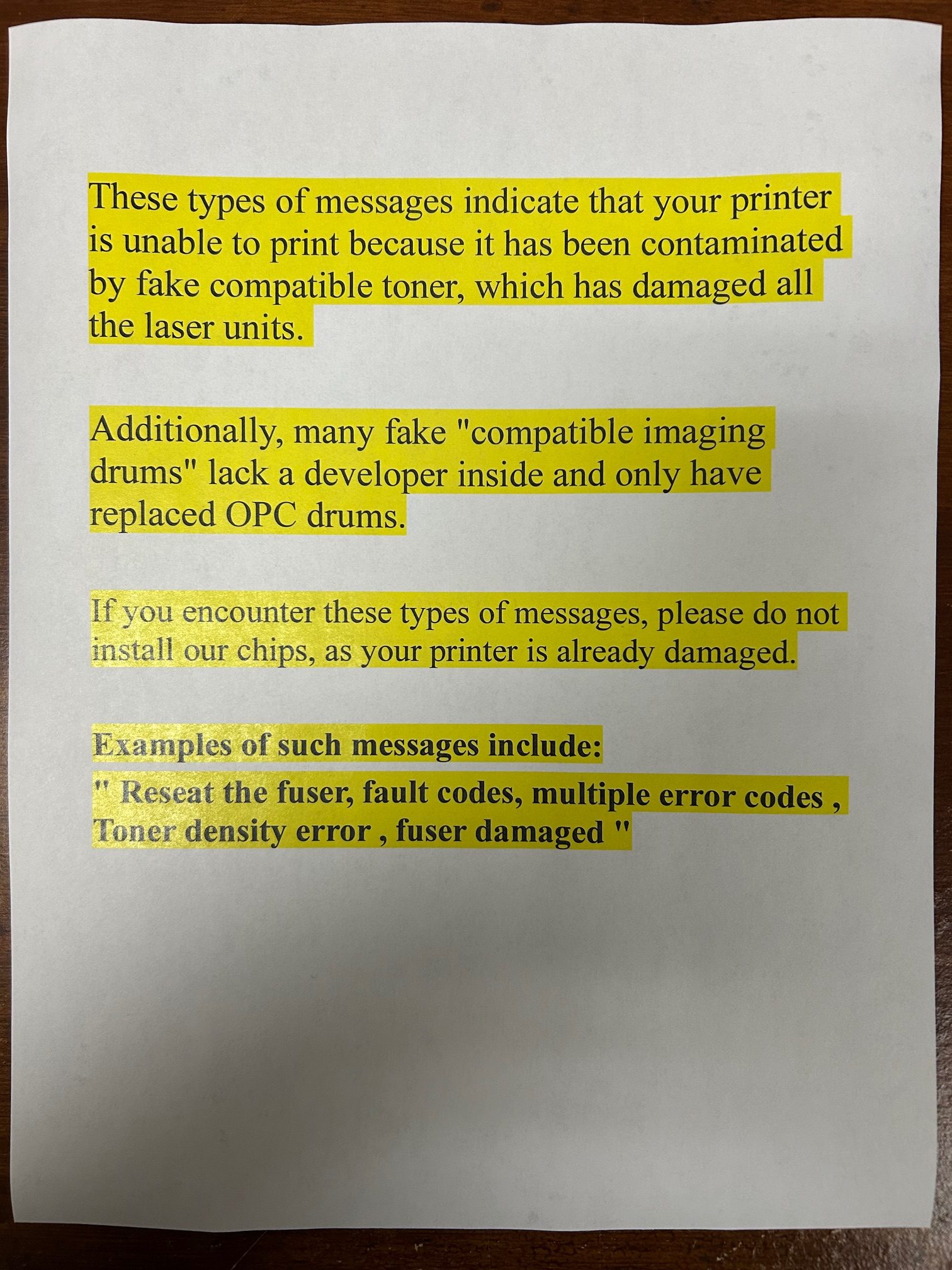 COMPATIBLE PRINTERS :
