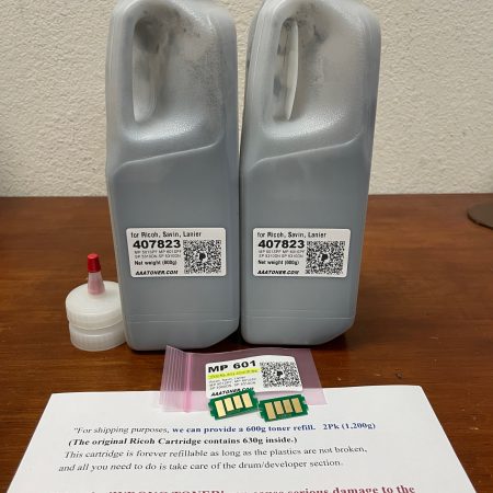 (600g x 2) Toner Refill for Ricoh, Savin, Lanier MP 501SPF, MP 601SPF, SP 5310DN, SP 5300DN (MP 601, MP 501, 407823) + 2 Chips
