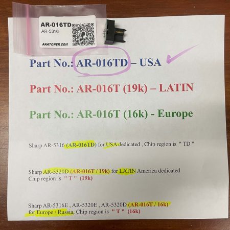" AR-016TD " Toner Reset Chip for Sharp AR-5316, AR-5320D, AR-5316E , AR-5320E , AR-5320D