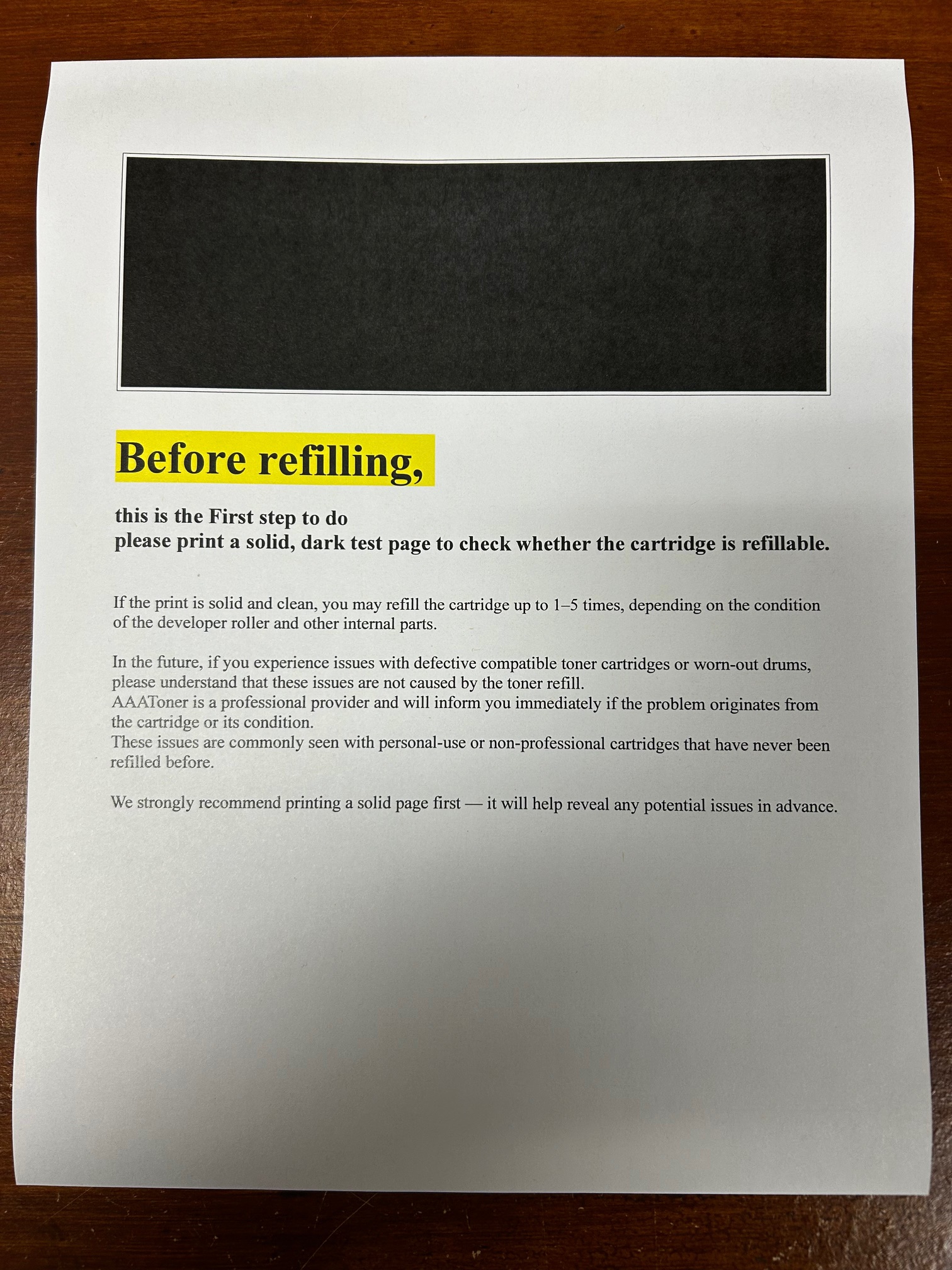 These cartridges use two different cartridge components: the drum section (comprising the drum and PCR roller) and the toner section (including the developer roller, blade, and more). They are not meant for indefinite refilling. Please check your last page or any solid page for lines, smearing, dings, leaking, or damage before refilling. Additionally, these printers are old models