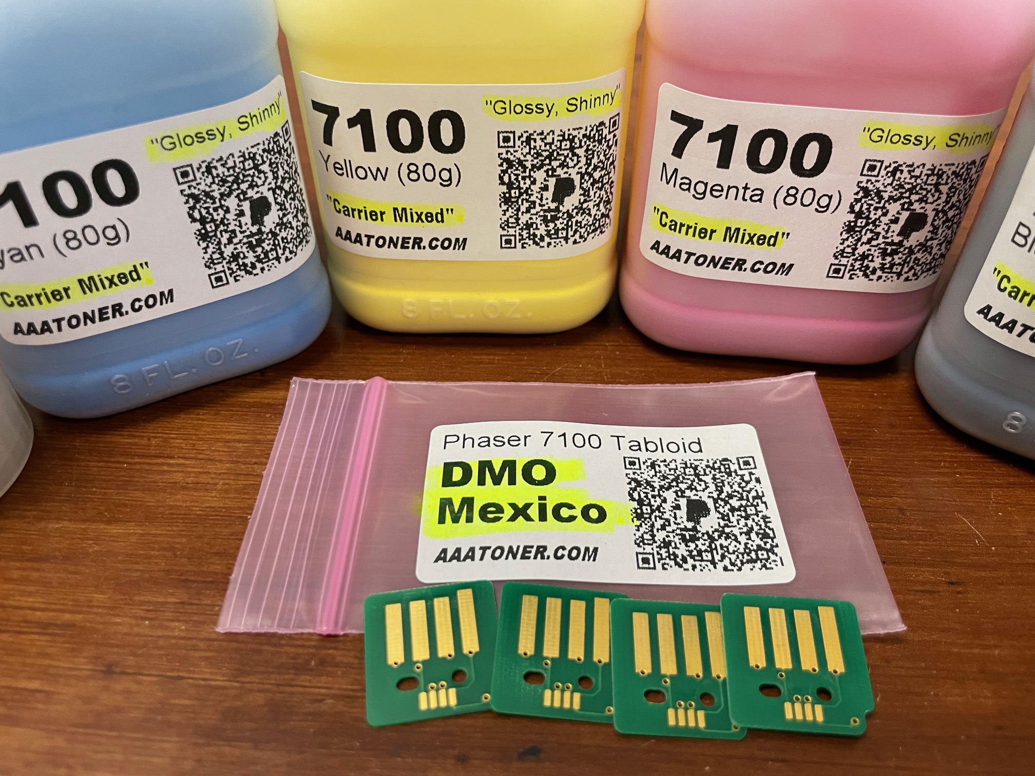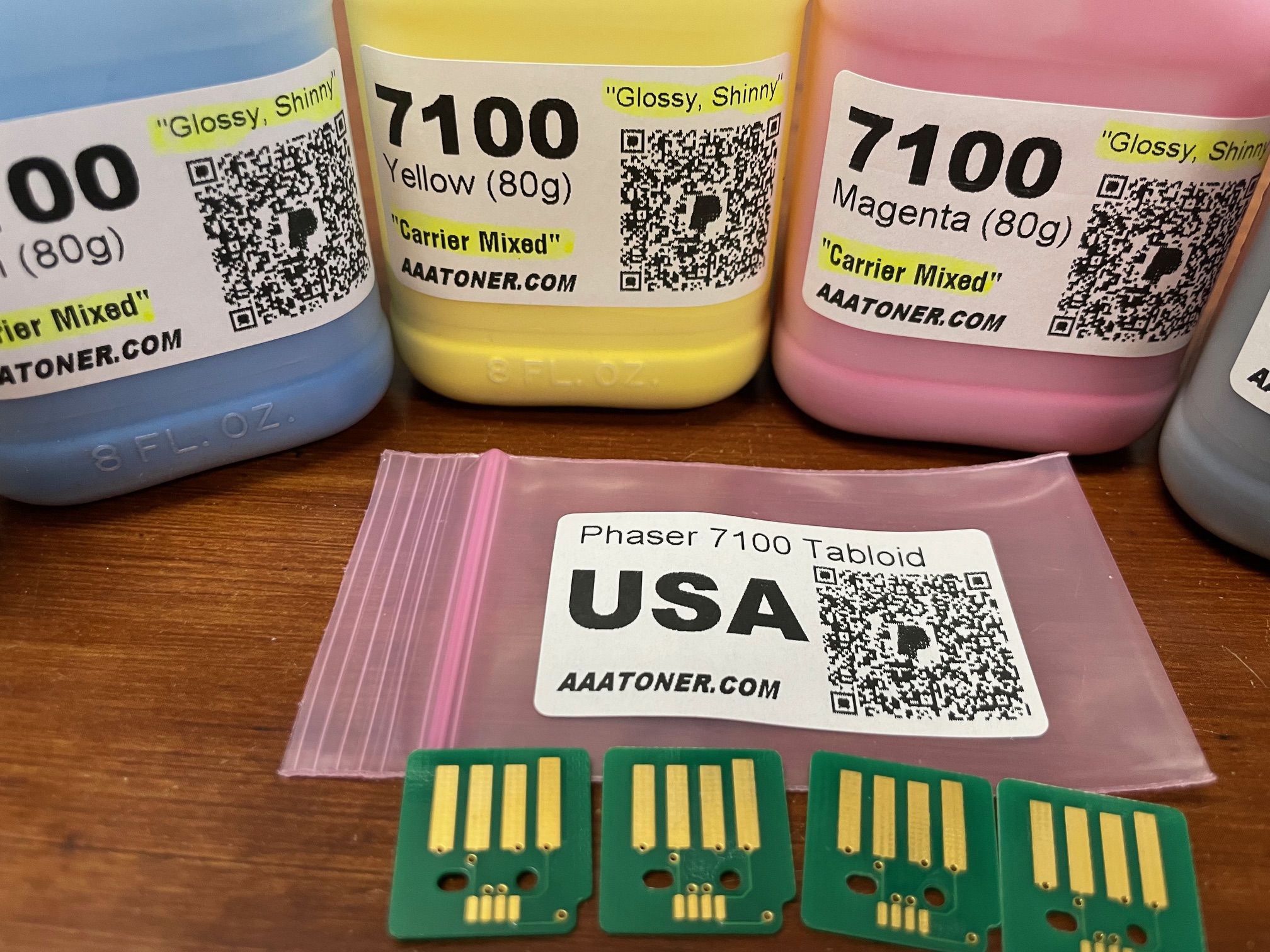 (80g x 4) Glossy Toner Refill for Xerox Phaser 7100, 7100N, Tabloid, 7100DN + 4 Chips