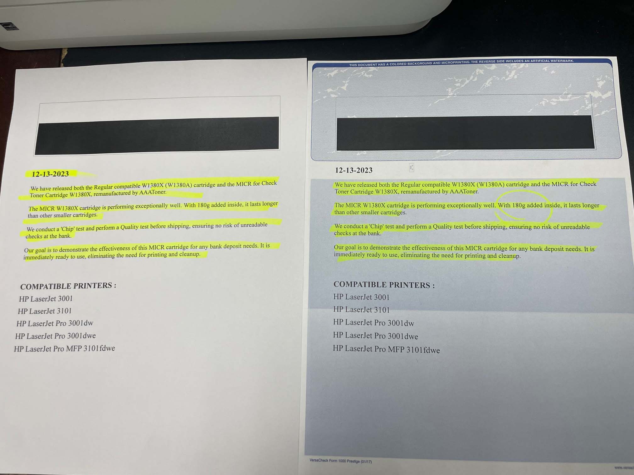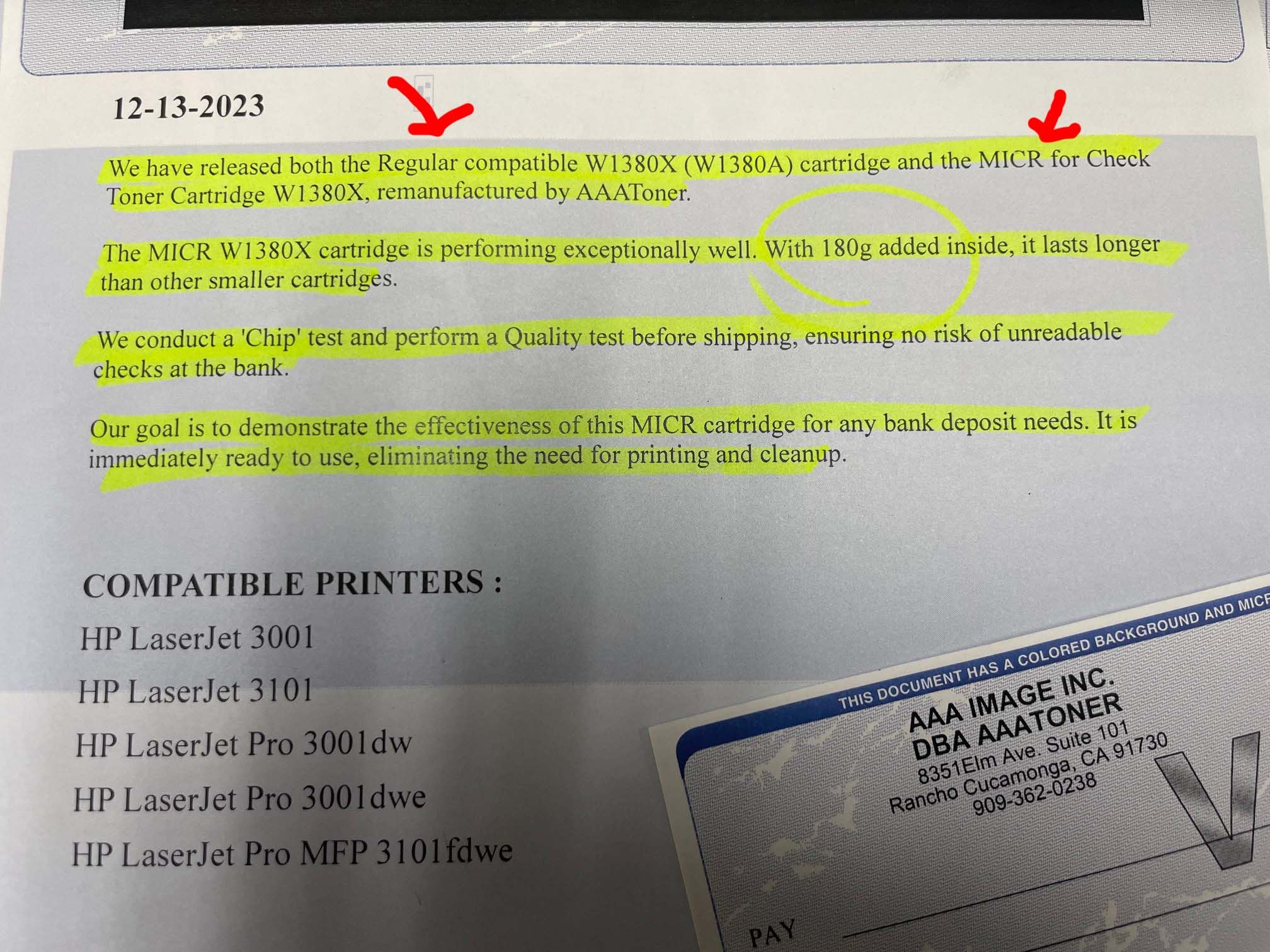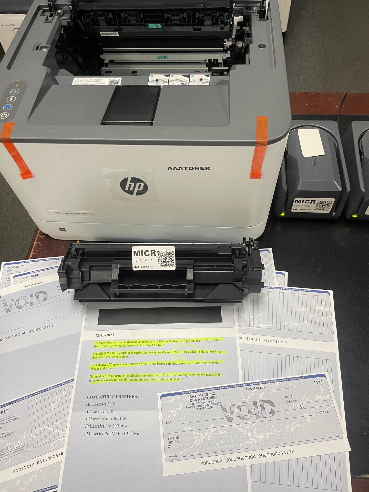 MICR (Check Print) Remanufactured Toner Cartridge for HP W1380X (138X), LaserJet 3001, 3101, Pro 3001dw, Pro 3001dwe, Pro MFP 3101fdwe
