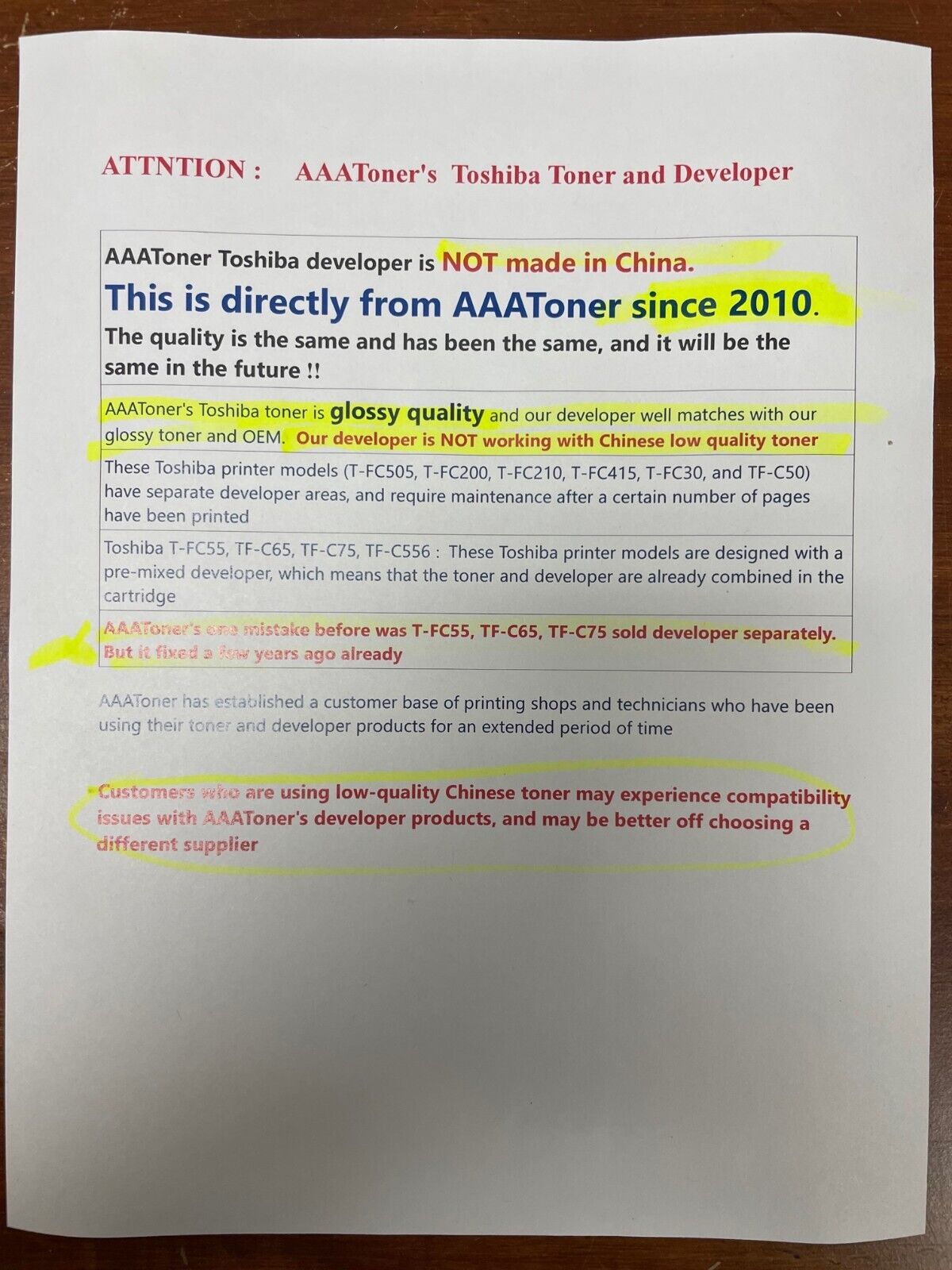 Type: Color Developer Refill Powder